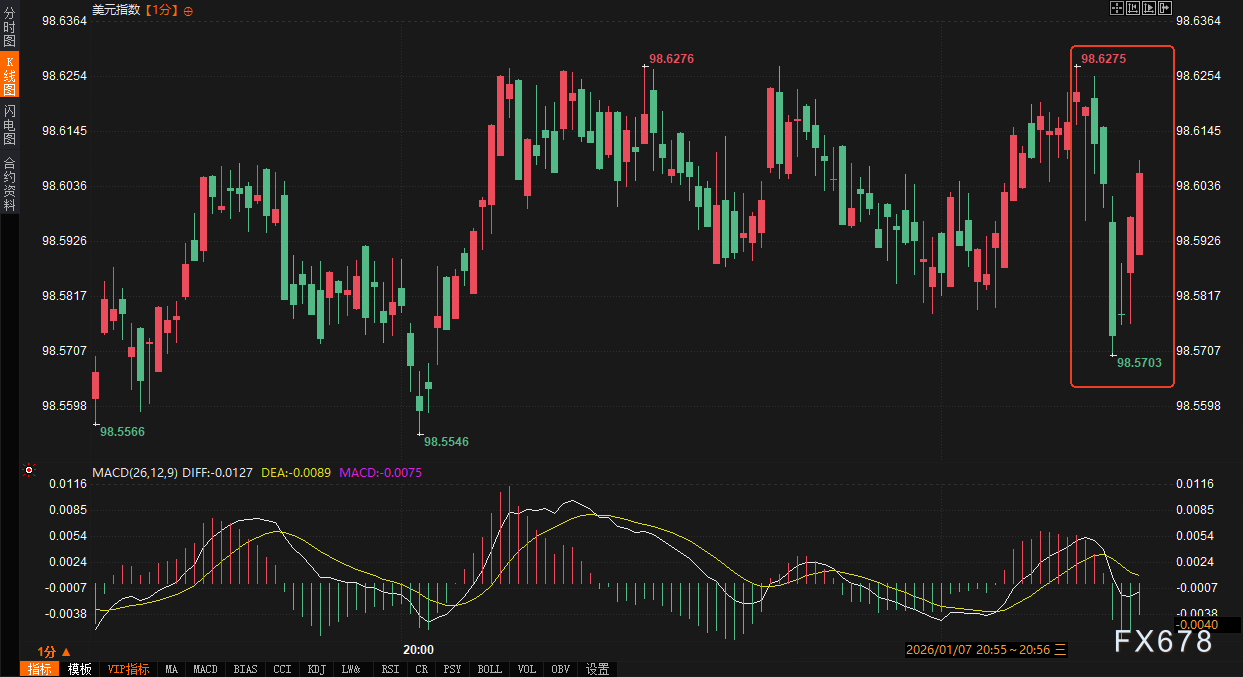外汇市场: 美元指数在数据公布瞬间波动有限,仅约2个点,最终报于98.61一线,整体维持在本周相对低位的窄幅区间震荡。美元未能从数据中获得上行动能,反映出市场认为疲软的就业数据降低了美联储更快转向鹰派或推迟降息的可能性,从而削弱了美元的利率优势预期。