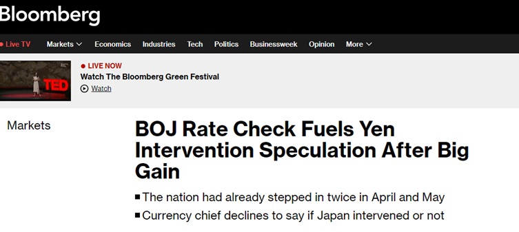 美国彭博社周五报道称,由于日本央行对交易员进行了所谓的汇率检查,日元汇率周五走势波动,这一消息强化了日本当局周四干预市场以支撑日元的看法。