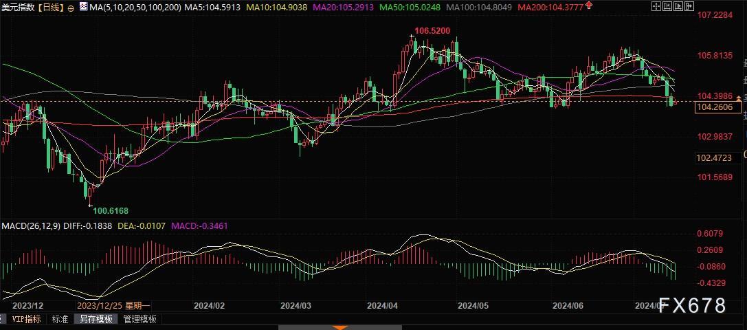 北京时间7月15日9:00,美元指数报104.25