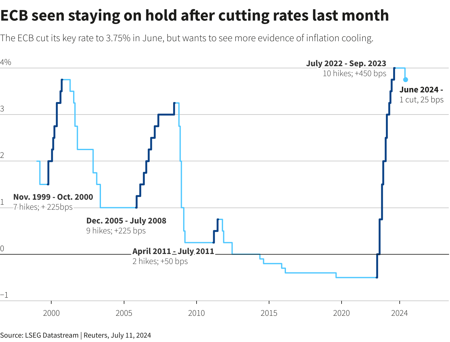 如下图所示,6月降息后,欧洲央行本周料维持利率不变