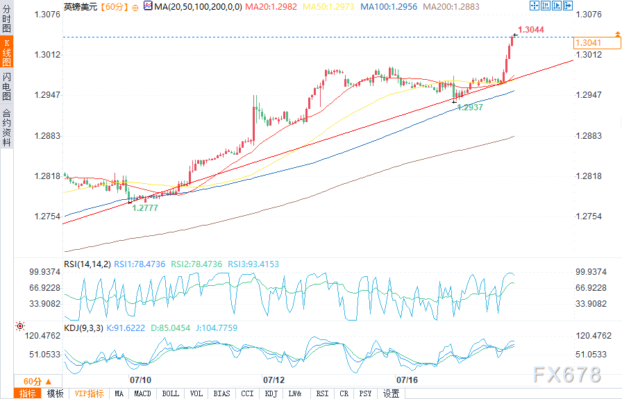 周三(7月17日)欧盘时段,英镑/美元一年来首次升穿1.3关口,因投资者寄望新当选的工党政府将在未来一段时间内出台有利于经济增长的政策,并保持政治稳定。