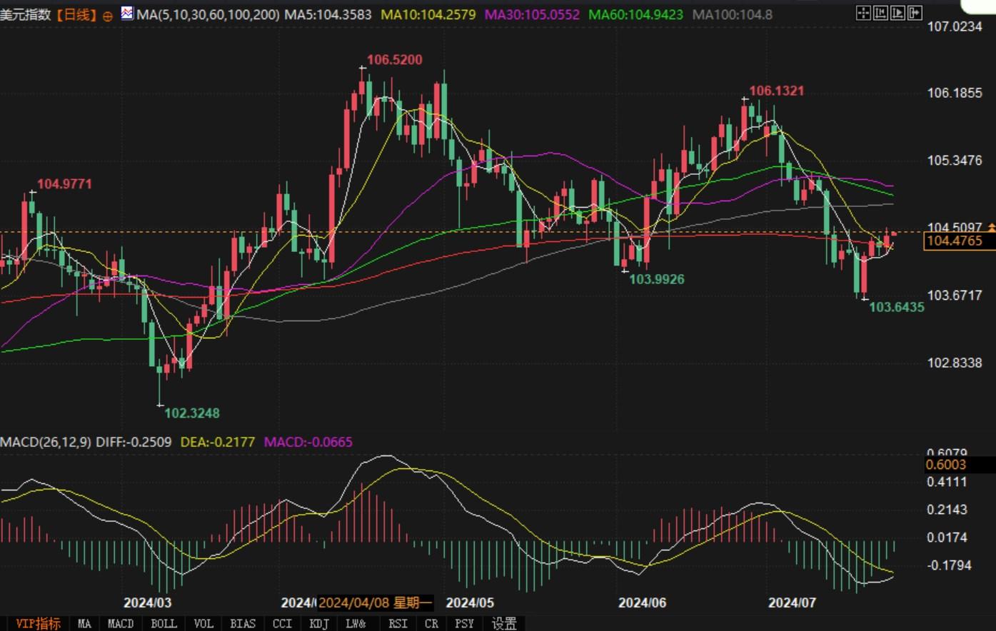 北京时间7月24日7:17,美元指数报104.42