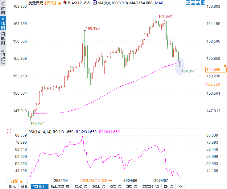 从技术面来看,美元/日元的走势也显示出明显的下跌趋势。技术指标显示,该货币对的跌势可能持续。周三的走势由日元主导,自7月3日跌至近40年低点以来,日元已累计上涨逾4.5%。这种强劲的反弹不仅在技术面上形成了支持,也在一定程度上反映了市场对日元未来走势的乐观预期。