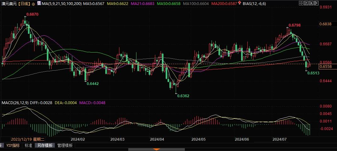 北京时间7月29日11:00,澳元兑美元报0.6558/59