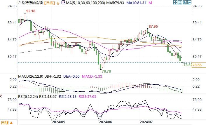 北京时间7月30日11:24 布伦特原油连续 报 78.66 美元/桶