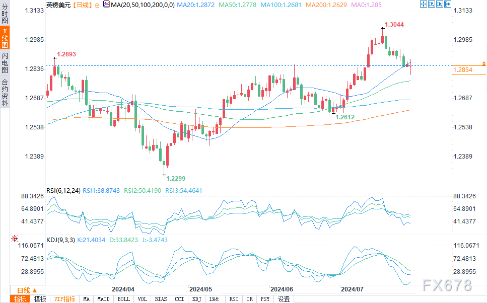北京时间周一(7月29日)23:17,英镑/美元报1.2854/55,跌幅0.09%。