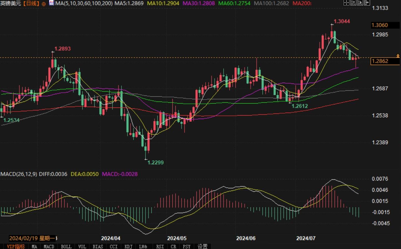 北京时间7月30日7:17,英镑兑美元报1.2862/63