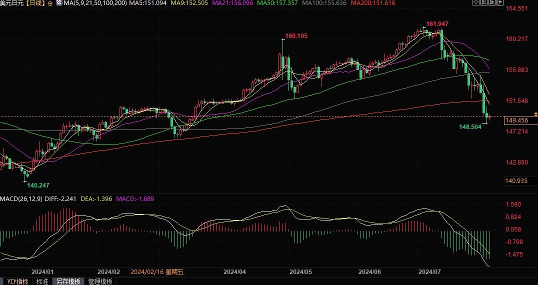北京时间8月2日12:02,美元兑日元报149.47/48