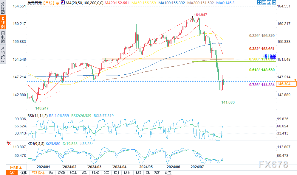 周四(8月8日)欧盘时段,美元/日元维持窄幅震荡,盘中报146.174,跌幅0.33%。