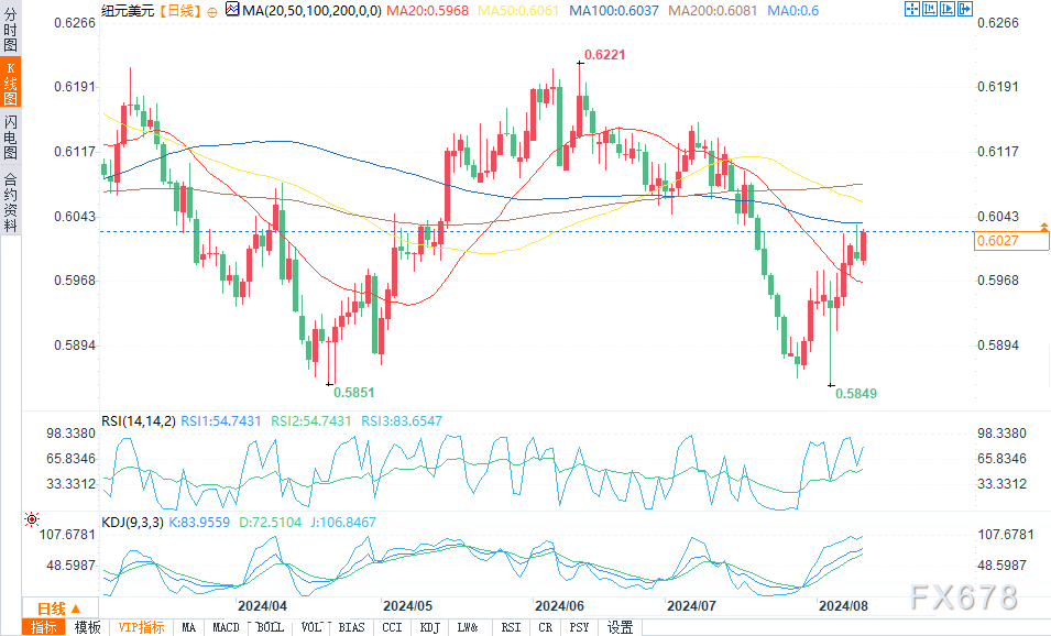 新西兰联储(RBNZ)现在面临着一个关键的决定:要么在本周启动降息周期,要么冒着被视为“落后于曲线”的风险。在7月10日的会议上,新西兰央行采取了鸽派立场,此后要求美联储大幅降息的呼声越来越高,新西兰央行可能会找到降息的理由。尽管降息50个基点的可能性很小,但降息25个基点仍是最有可能的情况。市场已经消化了8月份降息的可能性约为70%,这意味着纽元面临潜在的下行压力,特别是如果降息伴随着鸽派言论的话。