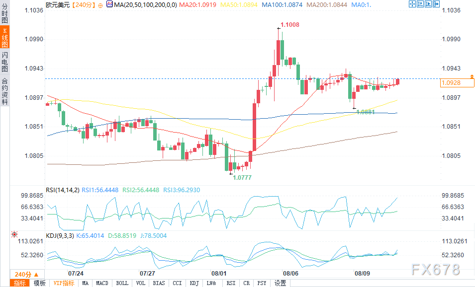 北京时间周一(8月12日)18:03,欧元/美元报1.0928,涨幅0.13%。