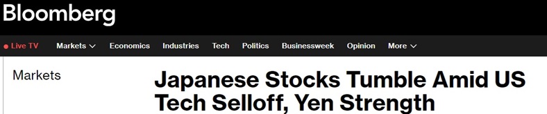 日经225指数跌幅一度高达4%。包括瑞萨电子(Renesas Electronics Corp.)、Advantest Corp.和Socionext Inc.在内的芯片相关公司股价崩跌超过9%。