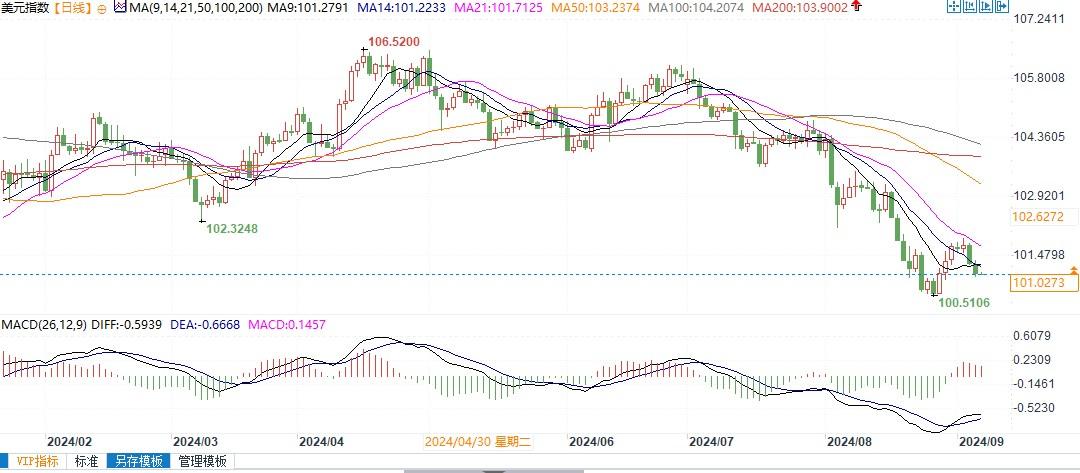 北京时间9月6日10:40,美元指数报101.05