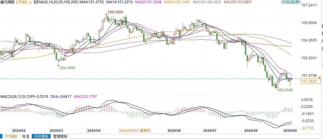 北京时间9月9日11:28,美元指数报101.26