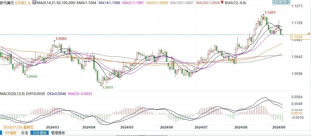 他还表示,欧元兑美元的阻力位在1.1100和1.1140,如果突破这些水平,8月份的高点1.1200将成为多头的下一个主要目标。