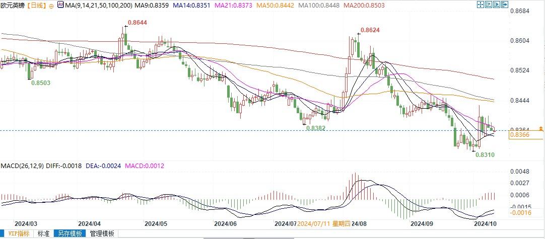北京时间10月10日13:01,欧元兑英镑报0.8369/70