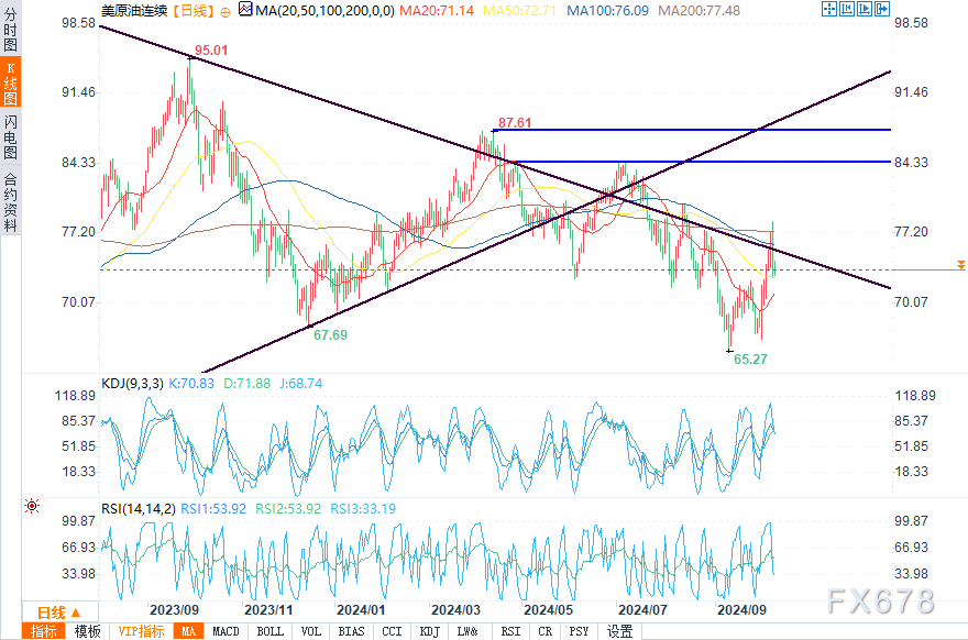 周三(10月9日)欧盘时段,原油期货价格小幅走低。疲软的需求基本面和美国原油库存的增加,盖过了中东地缘政治紧张局势和飓风米尔顿可能造成的供应中断所带来的风险。