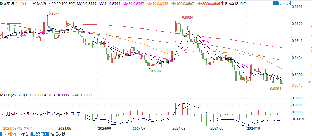 北京时间10月30日9:45,欧元兑英镑报0.8313/14