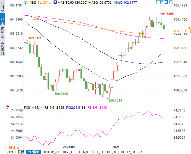 美元指数在104.10点位附近持稳,此前强劲的美国GDP数据进一步支撑了美元。美国第三季度GDP年化增长率达到2.8%,显示出经济的韧性。