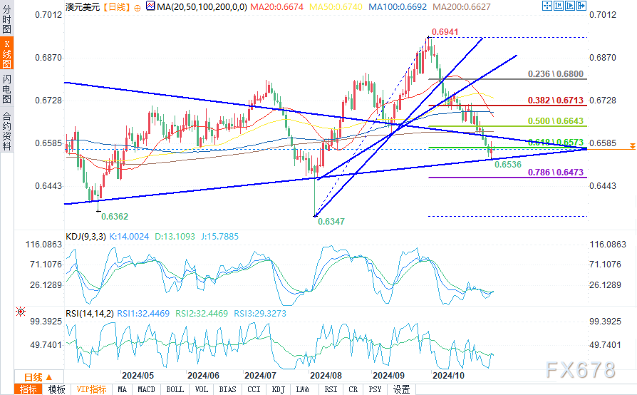 周四(10月31日)欧盘时段,澳元/美元处于狭窄的区间横盘整理,盘中略高于0.6547。从9月30日峰值开始的看跌趋势仍然很稳定。澳元/美元的多头不仅未能上演上涨行情,也未能暂时中断正在进行的抛售。市场的焦点是美国总统大选,尽管本周的美国数据也可能对美元的表现产生重大影响。