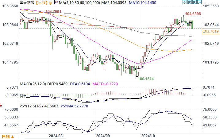北京时间11月4日11:11 美元指数 报 103.66/67。