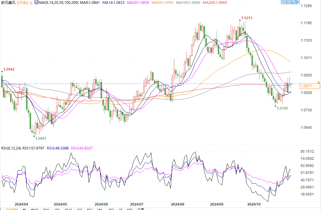 欧元兑美元日线图