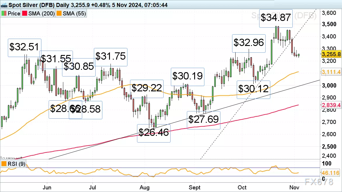 现货白银价格下跌放缓