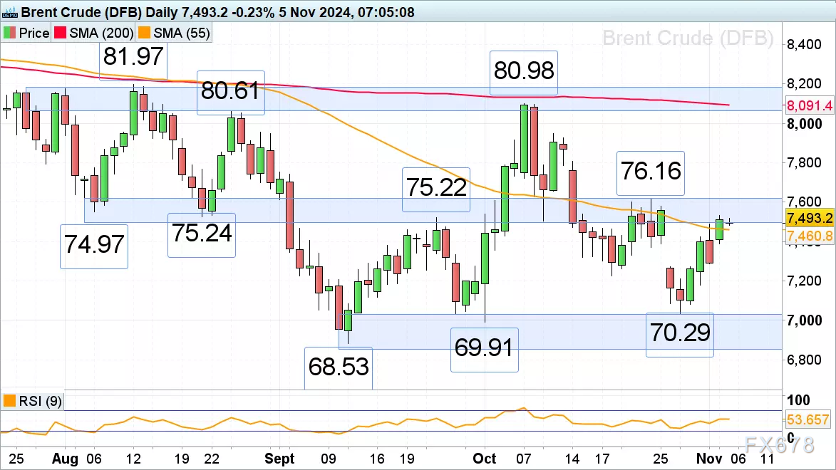 如果价格上涨,76.16上方是重要的80.61- 81.97阻力位区域。