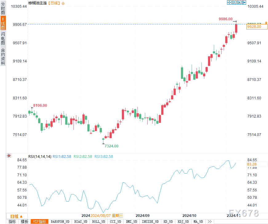 从盘面来看,棕榈油短期支撑位在9500元附近,突破10000点仍有望实现。鉴于当前供需收紧格局和减产季因素,棕榈油的强势格局或将延续。关注10000元的整数关口是否站稳。