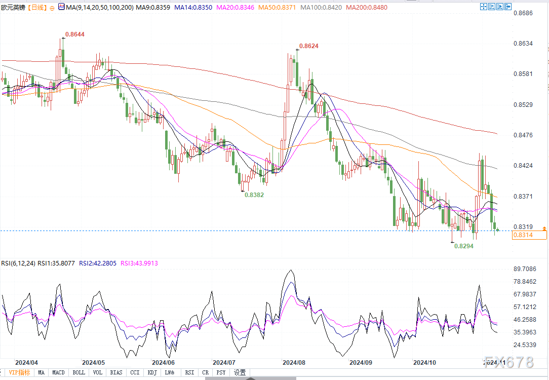 北京时间11月8日10:12,欧元兑英镑报0.8314/16