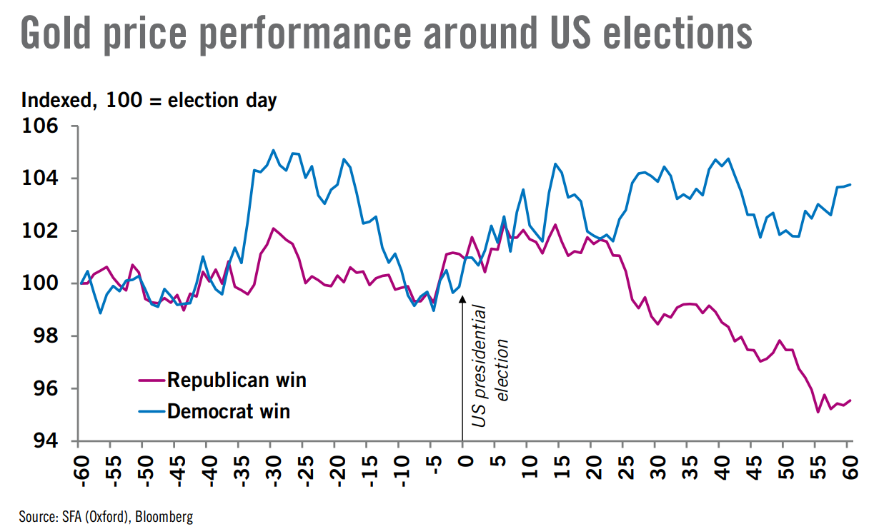 在贺利氏最新的贵金属报告中,分析师们指出,历史上,共和党胜选对金价的短期前景并不利好。