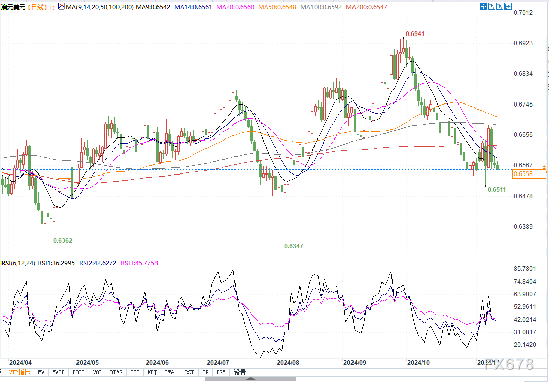 北京时间11月12日10:24,澳元兑美元报0.6564/65