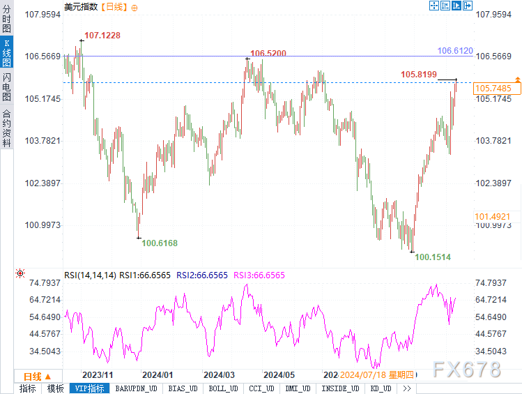 截至发稿,美元指数报105.7442,日内上涨0.23%。市场交易员需密切关注缺口附近的价格表现,这一关键位置将是多空双方博弈的焦点。