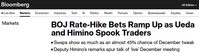 交易员现将日本央行12月政策会议视为一个“实时”事件,即具有即时影响和重要性、可能会对市场产生实质性的波动和影响的事件。