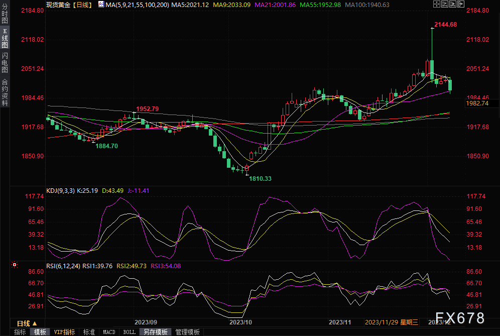 此前强势的贵金属走势逆转明显。周五,现货黄金盘中跌穿2000美元整数位心理关口,为11月27日以来首次,跌幅高达1.5%。COMEX白银期货日内跌幅达3%,报23.34美元/盎司。