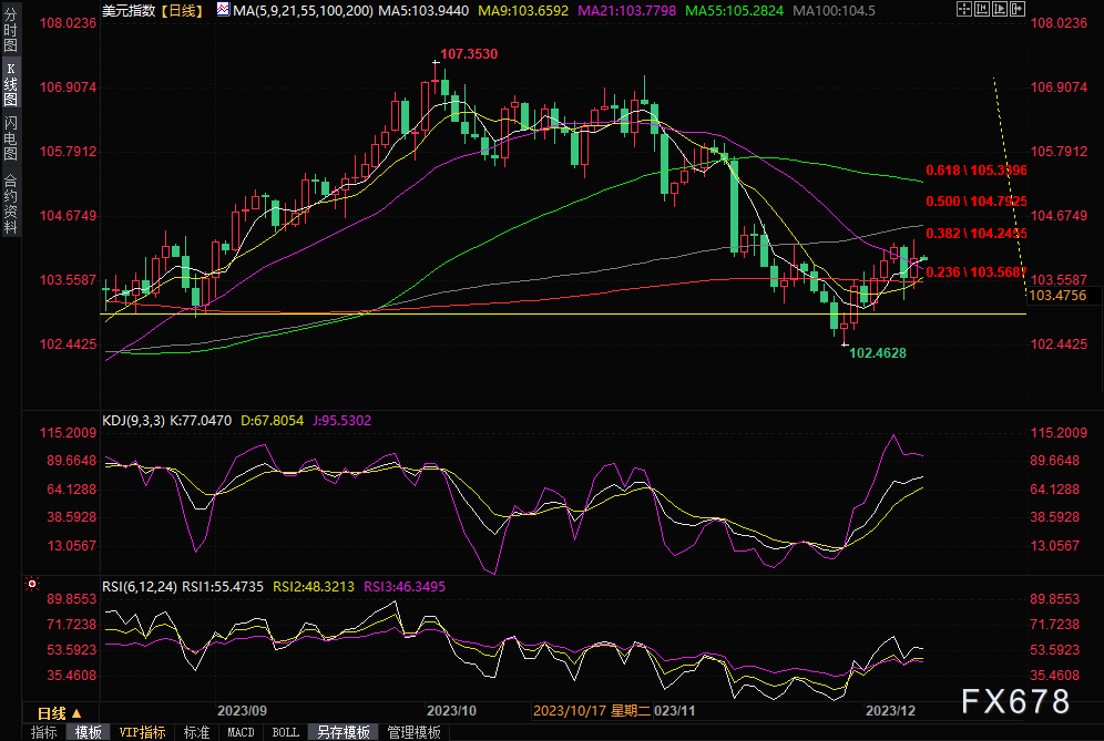 汇市:上周美元5个交易日中只有周四收跌,整体呈现震荡走高行情,自周初的103.20附近小幅走高,最高触及104.29水平,不过央行降息的预期抑制美指的上行空间,最终美元结束此前连续三周下跌的势头,上周以小涨0.77%做收。