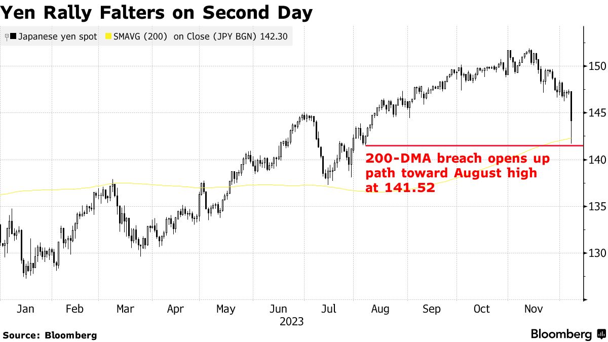 数据显示上个月美国经济创造的就业机会超出预期,导致交易员缩减对美联储明年降息幅度的押注。这同时也导致了日元兑美元汇率下跌,最大跌幅为0.8%,跌至145.21。同时,美国国债收益率和美元走高。
