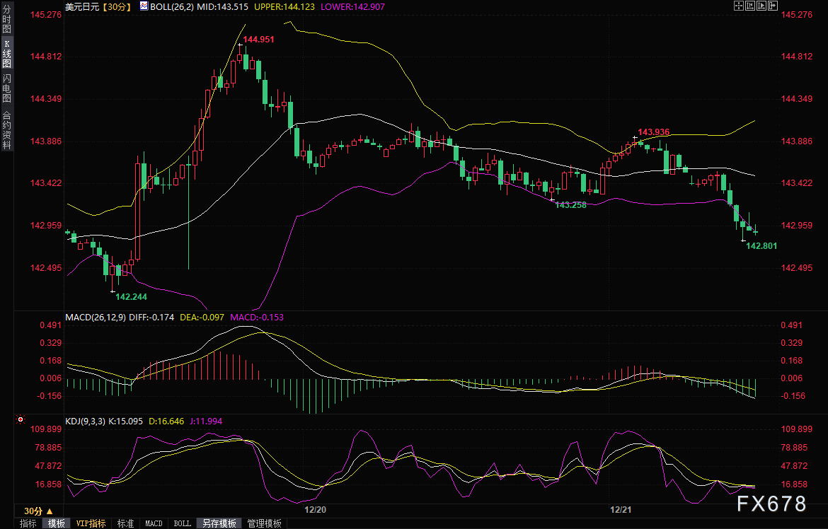 周四(12月21日)亚市,美元/日元跌破143整数关口,最低触及142.80,技术面发出看跌信号。对美联储2024年第一季降息的押注不断增加,导致10年期美债收益率回落,拖累美元兑日元走势。分析警告,美元/日元跌破143关口后,恐再遇更沉重打击。日内将出炉美国初请失业金人数、费城联储制造业和国内生产总值(GDP)数据,投资者需要重点关注。