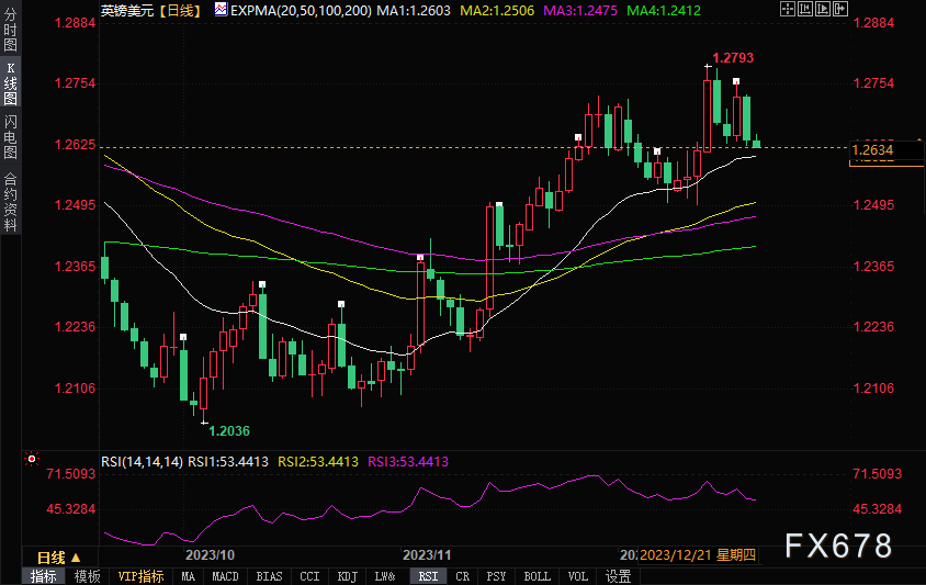 周四(12月21日),欧盘时段,英镑/美元盘中报1.2626,跌幅0.09%。