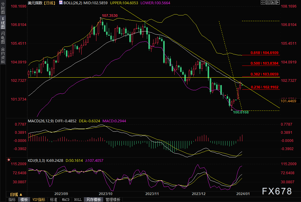 美元指数周三收报102.46,涨幅约0.23%,盘中最高曾触及102.73,为12月14日以来新高。
