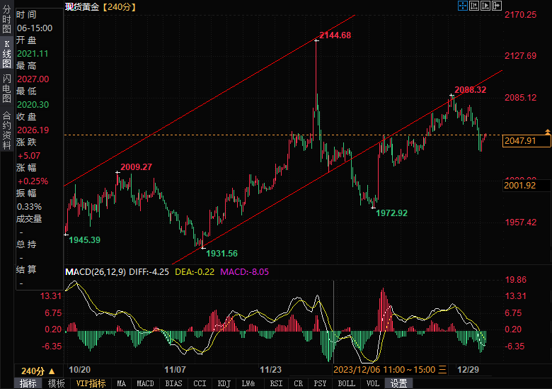 根据周四(1月4日)的现货黄金市场动态,金价在昨日的大跌后呈现小幅反弹态势,当前价位在2046美元/盎司附近。技术分析显示,金价在未能有效攻克关键阻力位2065.70美元/盎司后,其前景仍然偏向空头。