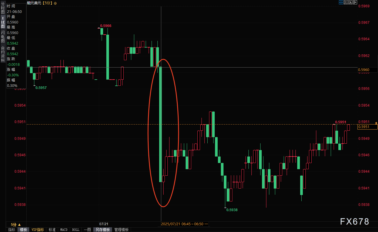 受第二季度新西兰通胀数据不及预期影响,纽元兑美元周一(7月21日)亚洲时段走低,目前在0.5947附近震荡,跌幅约0.17%。在周二新西兰贸易收支数据公布前投资者偏向于保持谨慎。此前,中国人民银行宣布维持一年期和五年期贷款市场报价利率(LPR)分别在3.00%和3.50%不变,值得注意的是2025 年一季度新西兰对华出口增速(12.5%)显著高于进口(3.9%) 该决定令纽元承压。