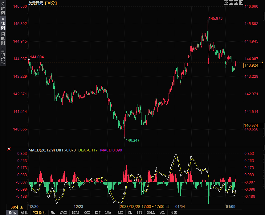 日本央行公布操作声明后,日元兑美元短线急涨超过85点,达到1美元兑143.42日元的水平。目前,汇率稳定在143.60附近。
