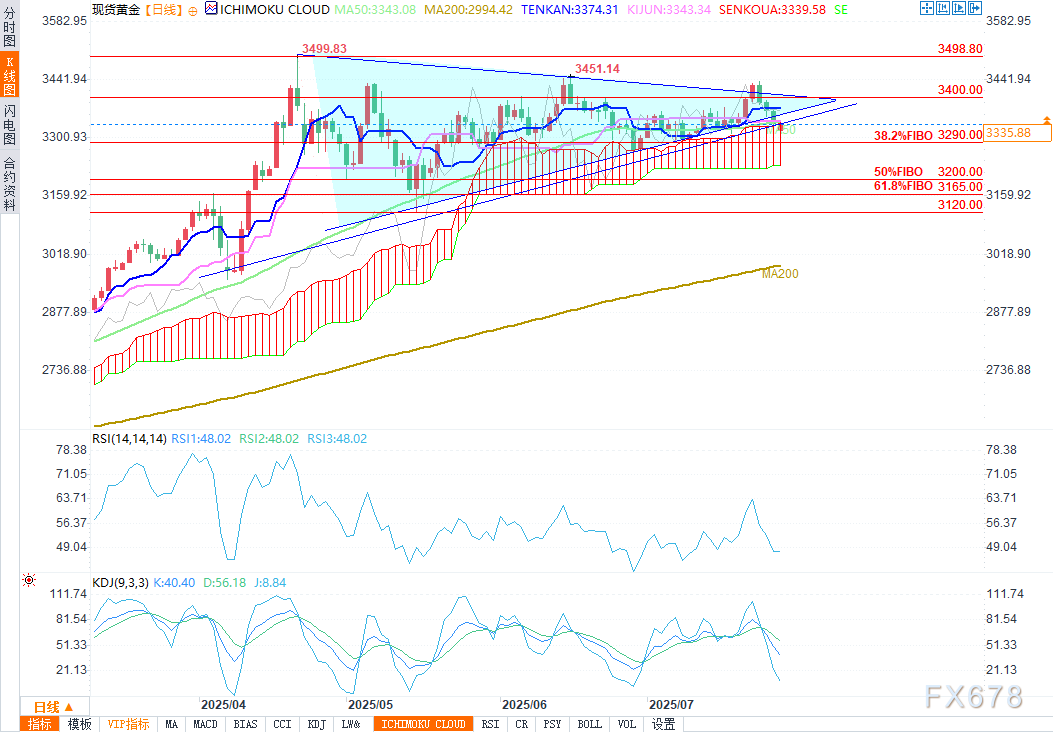 上行方面,突破3345–3370美元区间可能重振买盘兴趣。不过,要触发向关键阻力位3,500美元的快速反弹,可能需要收盘价明确突破三角形上轨附近的3400美元,以及上周阻力位3430美元。
