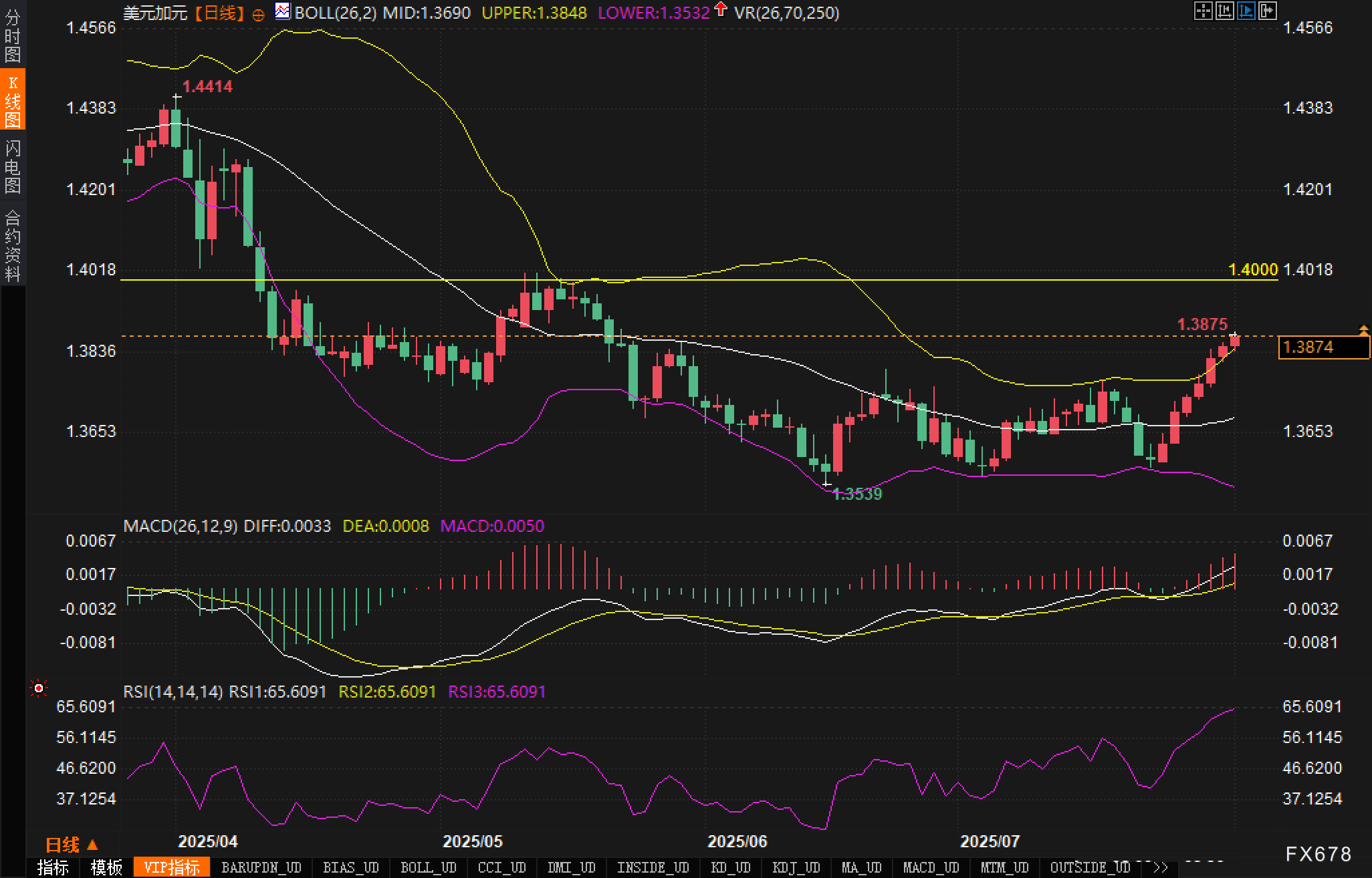 分析认为重要支撑位在布林中轨1.3690附近,若出现调整,该价位可视为第一道技术支撑。上方关键阻力聚焦于心理关口1.4000区域,若有效突破,或将打开新一轮上行空间。