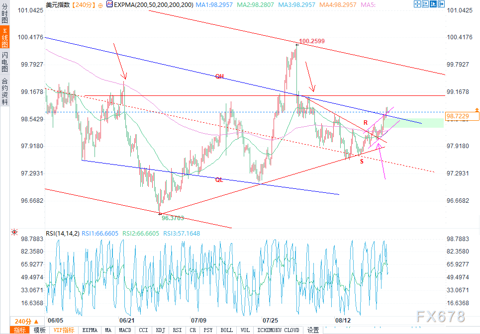 短期内,美元在紫色通道内持续上行,其支撑因素包括: