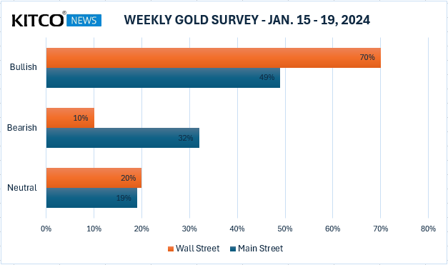 最新的 Kitco News每周金价调查显示,延续了上周的市场情绪,有一半的零售投资者预测下周金价将上涨,而超过三分之二的市场分析师对黄金的近期前景持看涨态度。