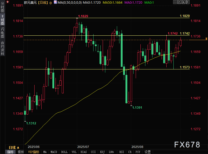 欧元技术面显示,若突破8月高点1.1742有可能进一步上探7月高点1.1829;若跌破50日简单移动平均线(SMA)(1.1664)关键支撑位,可能进一步下探近期低点1.1573。