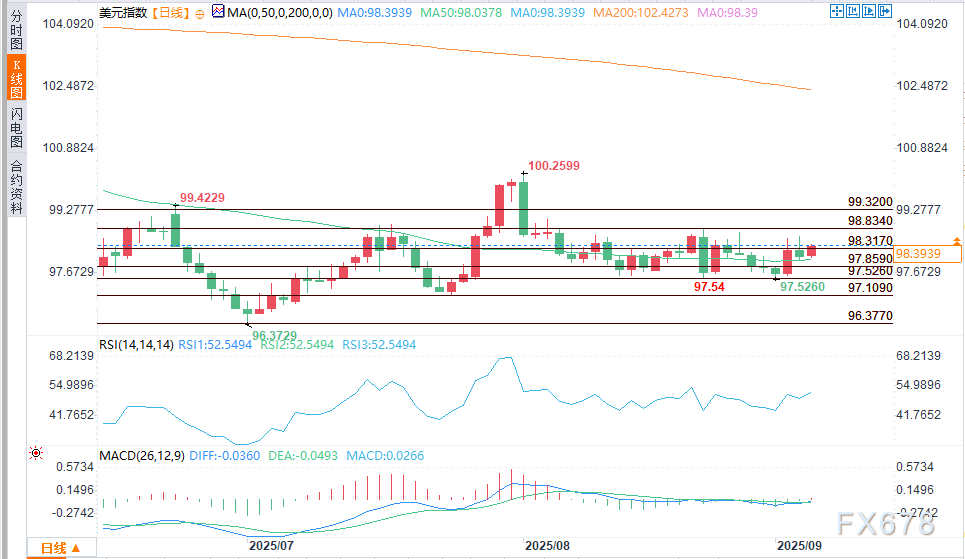 技术面展望:美元指数陷入窄幅震荡,关注98.370关键点位
