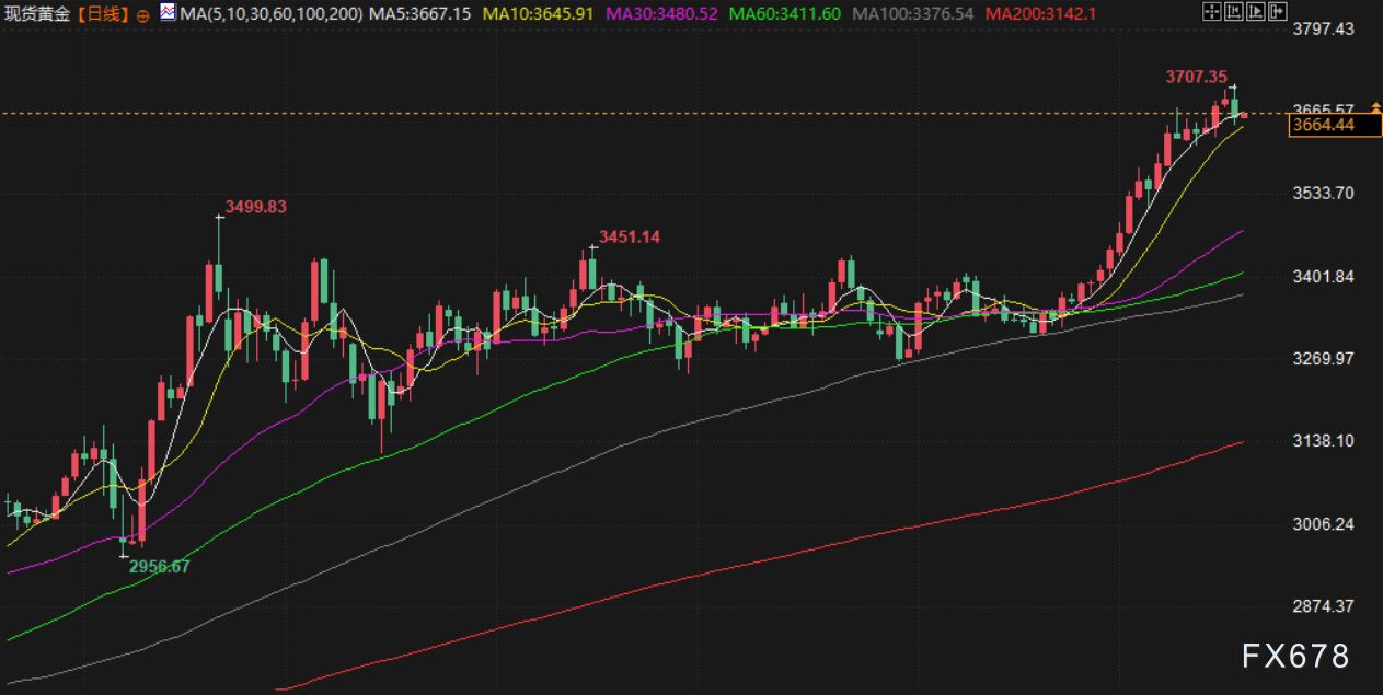 周四(北京时间9月18日)亚市早盘,现货黄金交投于3668.12美元/盎司附近,美联储一如预期将利率下调25个基点,且美联储主席鲍威尔指出就业市场疲软,市场参与者解读美联储主席鲍威尔的讲话,金价周三自日内触及的纪录高位3703.35美元/盎司回落;美原油交投于63.76美元/桶附近,油价周三下跌,此前数据显示美国柴油库存增加引发对需求的担忧,以及美联储一如预期降息。